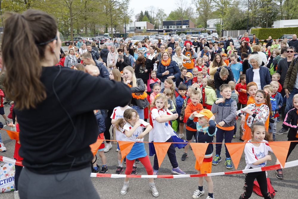 De dag begon voor iedereen met opwarmoefeningen en aansluitend de dans die bij het Koningslied hoort. Dat gebeurde onder leiding van een danjsuf op een podium op de parkeerplaats. Daarna splitsten de groepen zich op om naar het voor hen bestemde gedeelte van ‘t Wooldrik te gaan. Doordat de leerlingen in vier groepen waren onderverdeeld bleef het een overzichtelijke dag. Voor de groepen 1 en 2 was er een programma met spelletjes en activiteiten als dansen, een vlaggenkringspel en een Koningstikspel. De groepen 3 en 4 hadden een veld tot hun beschikking, alsmede de beide sporthallen en KidsCity. Daar waren voor hen allerlei sportieve activiteiten georganiseerd.