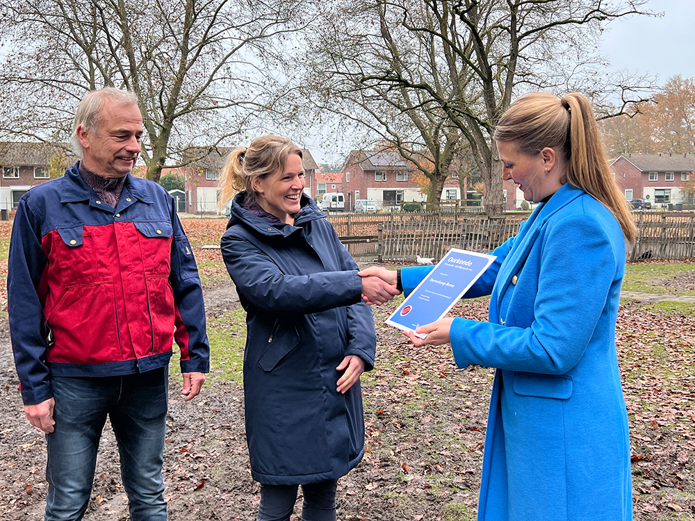 “Dit is nu echt een voorbeeld van een echt buurtinitiatief dat veel bezoekers trekt”, vond Marieke Blom. Ze roemde de inzet van de buurt voor het dierenparkje, de dagelijkse zorg voor de beesten, maar ook de extra inzet tijdens NL Doet. Beheerder Bert Kremer en coördinator Astrid Roek namen de prijs in ontvangst. (AJ/BM)