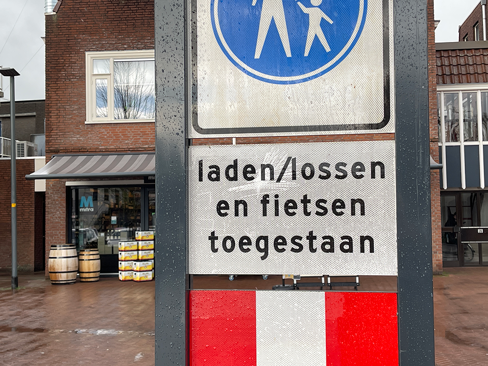Het Rheineplein blijft voor laden en lossen toegankelijk vanaf parkeerplaats De Bolkshoek bij Albert Heijn. (AJ)