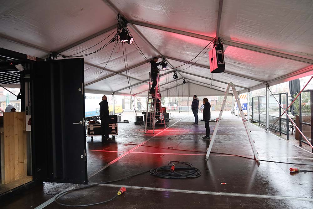 Zaterdagmorgen gaat de leverancier van de ijsvloer aan het werk, waarna de brandweer ’s middags de vloer komt vullen. De kerstaankleding moet daarna voor de finishing touch zorgen. “Dit is lekker werken zo”, voegt Lagendijk nog toe. “Tot dusver klopt het gewoon allemaal en de medewerking van velen, waaronder die van Roast It, onze buurman voor vier weken, voelt goed. Aan de overkant van het plein worden nog tal van hekken geplaatst, waar de fietsen straks gestald moeten worden, en dan is het klaar zijn en is het wachten op zondagmiddag 17.00 uur.