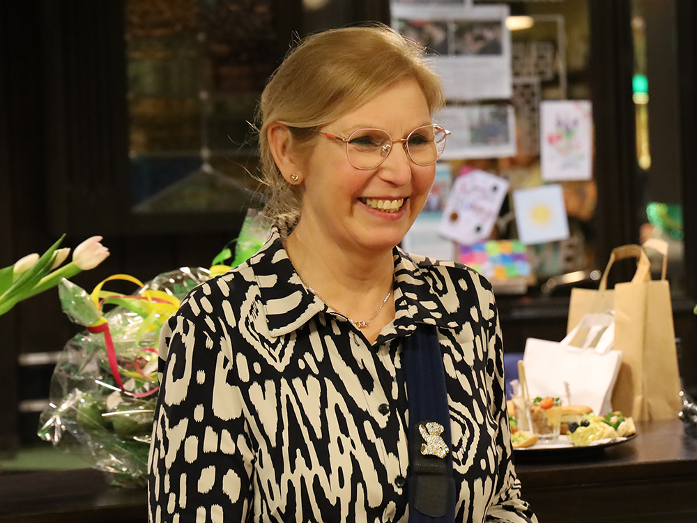 Nadat ze met trots haar Bijtje in ontvangst had genomen, was het tijd voor een kort dankwoord. “Tja, daar sta je dan met een dubbel gevoel. Ik heb het al die jaren met heel veel plezier gedaan, heel veel enthousiaste collega’s ontmoet en mooie herinneringen gemaakt.” Ooit hoopt ze er nog een boek over te kunnen schrijven. Om er direct “al ben ik maar een dyslectisch kippetje” aan toe te voegen, en daarmee de nodige tijd te kunnen kopen. Wel had ze nog één dringende oproep aan allen die haar op deze middag uitgeleide deden. “Een dag niet gelachen, is een dag niet geleefd. Blijf dat vooral doen!“, zo klonk het vol overtuiging. (AJ/BM)