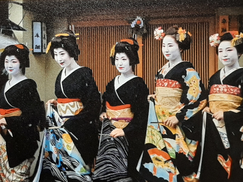 Een jong meisje kan door een geishahuis worden uitgenodigd voor een opleiding. Haar studie wordt bekostigd en haar familie wordt financieel ondersteund. Het kind wordt als het ware geadopteerd. Het was een hele eer om uitverkoren te zijn. Zij start als leerling, Maiko. De opleiding tot Geisha kan tot twintig jaar duren. Waar Maiko's bekend staan om hun opvallende en kleurrijke kimono's, hun ingewikkelde kapsels versierd met kanzashi-haarspelden (de bekende lange stokjes) en hun witte gezichtsmake-up met rode en zwarte accenten, dragen Geisha's juist uiterst verfijnde en elegante kleding en een subtiele make-up. Ze zijn het toonbeeld van verfijnde cultuur en elegantie. Op een videofilm in het museum is te zien hoe onder andere de dames gekleed en de kapsels gevormd worden.