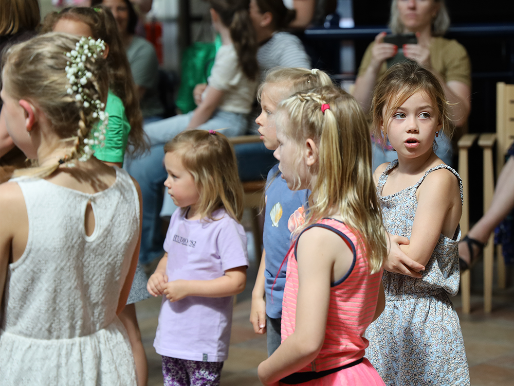 “Het ging gewoon hartstikke goed”, klinkt het zaterdag rond het middaguur in het atrium van Het Dijkhuis. Het zijn de complimenten van de werkgroep Pinksterbruidjes die zojuist samen met 120 meisjes tussen de vijf en elf jaar een uurtje hebben geoefend voor hun grootse optreden van morgen, op Eerste Pinksterdag. Terwijl achter het podium nog snel het laatste witte jurkje wordt gepast en uitgeleend kijken de meeste bruidjes in spe verwachtingsvol naar hun meegekomen papa’s en mama’s met een blik van ‘Heb ik het goed gedaan?’. En ja hoor: “Het ging perfect!”