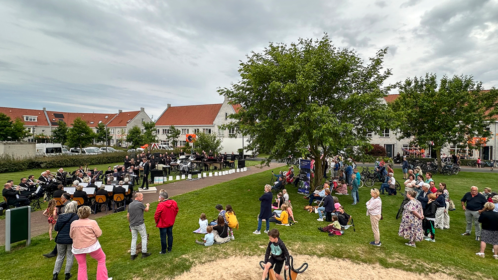 Zo'n kleine vierhonderd mensen genoten op deze zomeravond van muziek in de buitenlucht, weliswaar op twee verschillende locaties. Het Stedelijk Orkest Borne, aangevuld door de muziekvereniging St. Gregorius, verzorgde een buitenconcert in speeltuin Rozenhof op de Bornsche Maten. Met 'een concert tussen de containers' trakteerde De Bornse Harmonie het publiek op zomerse klanken.