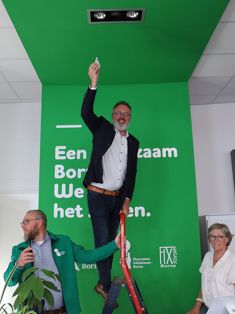 “Ik ben er trots op dat we dit in amper zes maanden hebben gerealiseerd,” zegt Nico Lansink Rotgerink, voorzitter van DIBO (Duurzame Initiatieven Borne). “Wij steken met al onze vrijwilligers de handen uit de mouwen!”