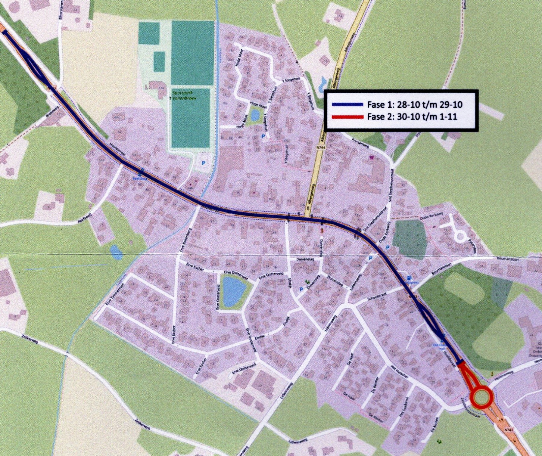 Fase 2: woensdag 30 oktober tot en met vrijdag 1 november: rotonde Hoofdstraat/Zenderensestraat.