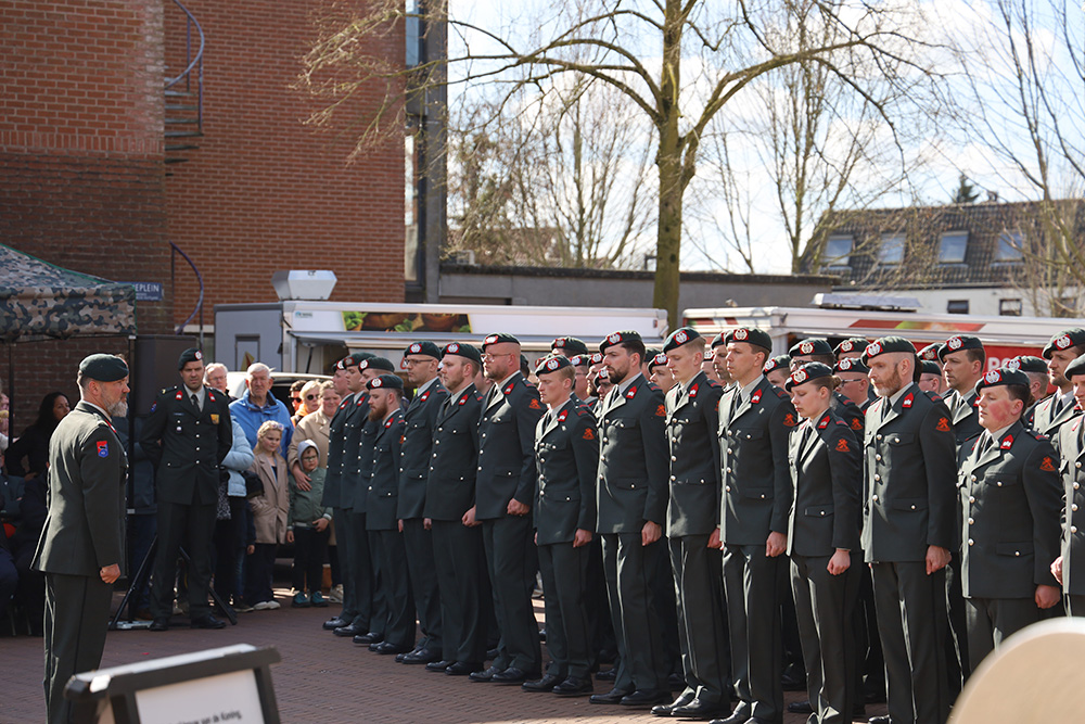 Vanmorgen vond een bijzondere militaire ceremonie plaats op het Rheineplein: de beëdiging van 82 reservisten van het Korps Nationale Reserve. Onder een stralende zon en toeziend oog van familie, vrienden en genodigden legden zij hun eed of belofte af op het Rheineplein.