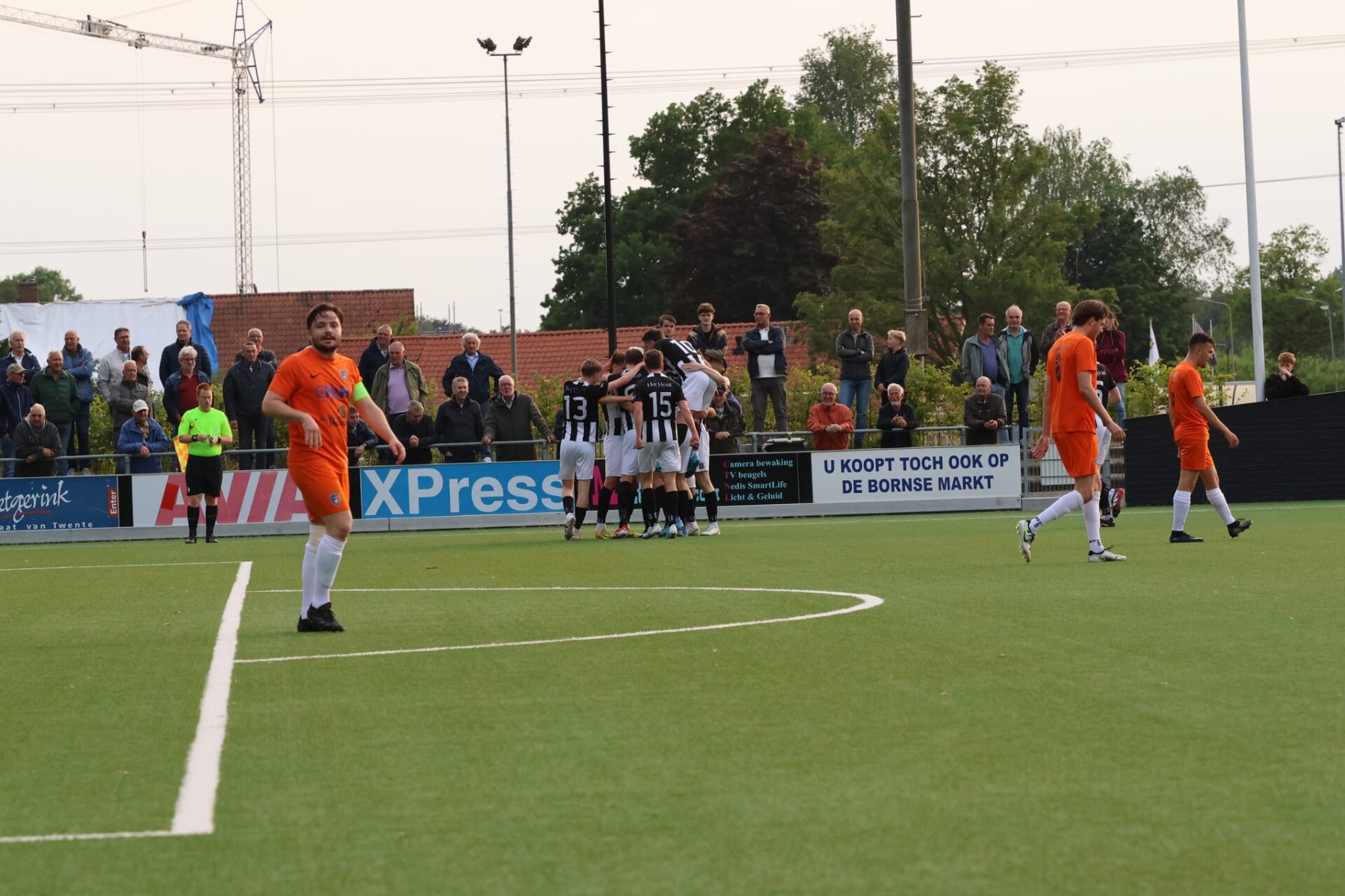 Na ruim een kwartier kantelden de veldverhoudingen. Wout Rouweler werd weggestuurd op links, gaf een voorzet die net niet onder controle kon worden gebracht door Jasper Scholten, maar Max Brunninkhuis joeg de afvallende bal richting de bovenhoek: 1-0, een prachtgoal. Vlak daarna voorkwam Kevin Roesink met een sublieme tackle dat een Groningse aanvaller door kon breken.