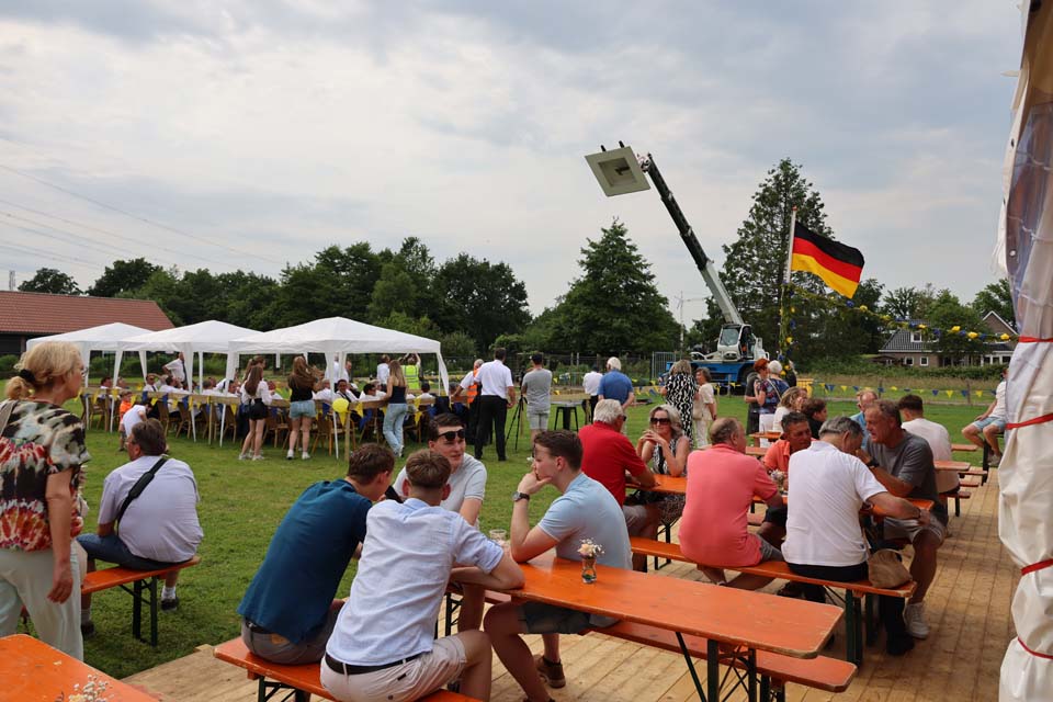 Het was alweer de 42e editie van het Schuttersfeest, en de tweede keer op de locatie aan de Twickelerblokweg. De schuttersvereniging uit Rheine moest dit jaar verstek laten gaan vanwege andere verplichtingen, maar dat deed niets af aan de feestvreugde. De zon straalde volop, de verwachte onweersbuien hielden wijselijk afstand, en het publiek genoot met volle teugen van een hapje, een drankje en – misschien wel het belangrijkste – elkaars gezelschap.