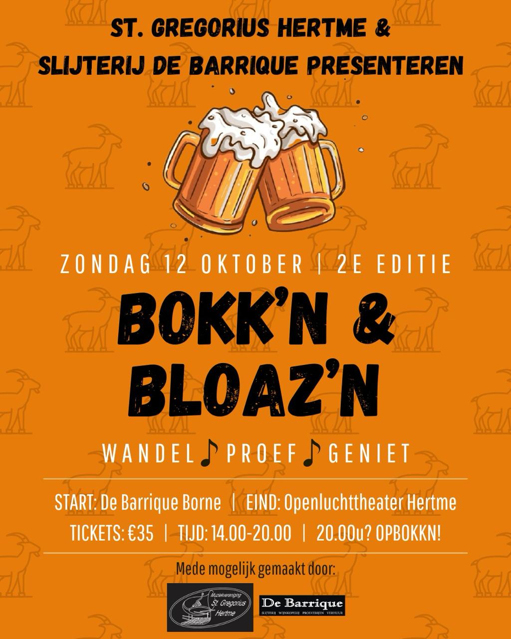 Na het succes van de eerste editie krijgt Bokk’n en Bloaz’n dit najaar een vervolg. Op zondag 12 oktober staat de tweede editie van de wandeltocht op het programma, waarbij muziek, bokbier en lekkernijen centraal staan.