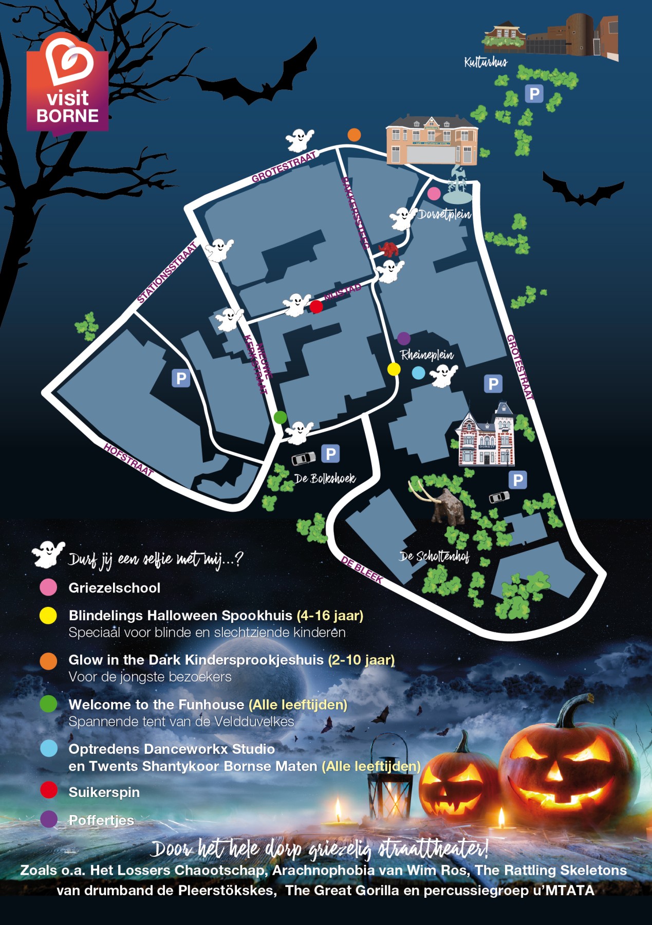 Het hele centrum van Borne is bovendien extra aangekleed in griezelige stijl, met grote, spannende Halloweenbeelden die zorgen voor een unieke sfeer.