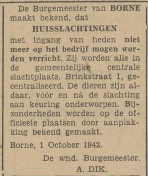 Voor de Tweede Wereldoorlog werden Bornse slagers ook al verplicht in Hengelo te slachten tegen hogere slachtrechten. Omdat ook de afstand een groot nadeel was, verzocht het gemeentebestuur op 24 oktober 1941 aan de commissaris in Overijssel om enkele lokalen van de voormalige vleeswarenfabriek en exportslachterij van Jan Schoemaker aan de Brinkstraat in gebruik te mogen nemen.