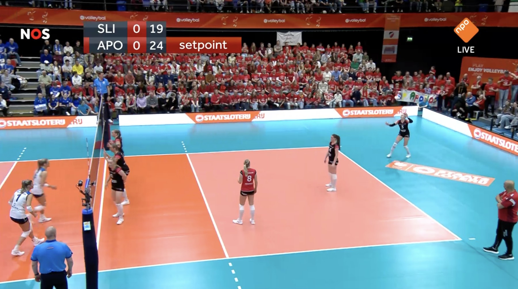 In de tweede set kantelde het beeld. Sliedrecht begon opnieuw scherp en profiteerde van een fase waarin Apollo 8 wat meer fouten maakte. De Bornse ploeg knokte zich nog terug van een ruime achterstand, maar kon niet voorkomen dat de set met 25-17 naar de tegenstander ging.