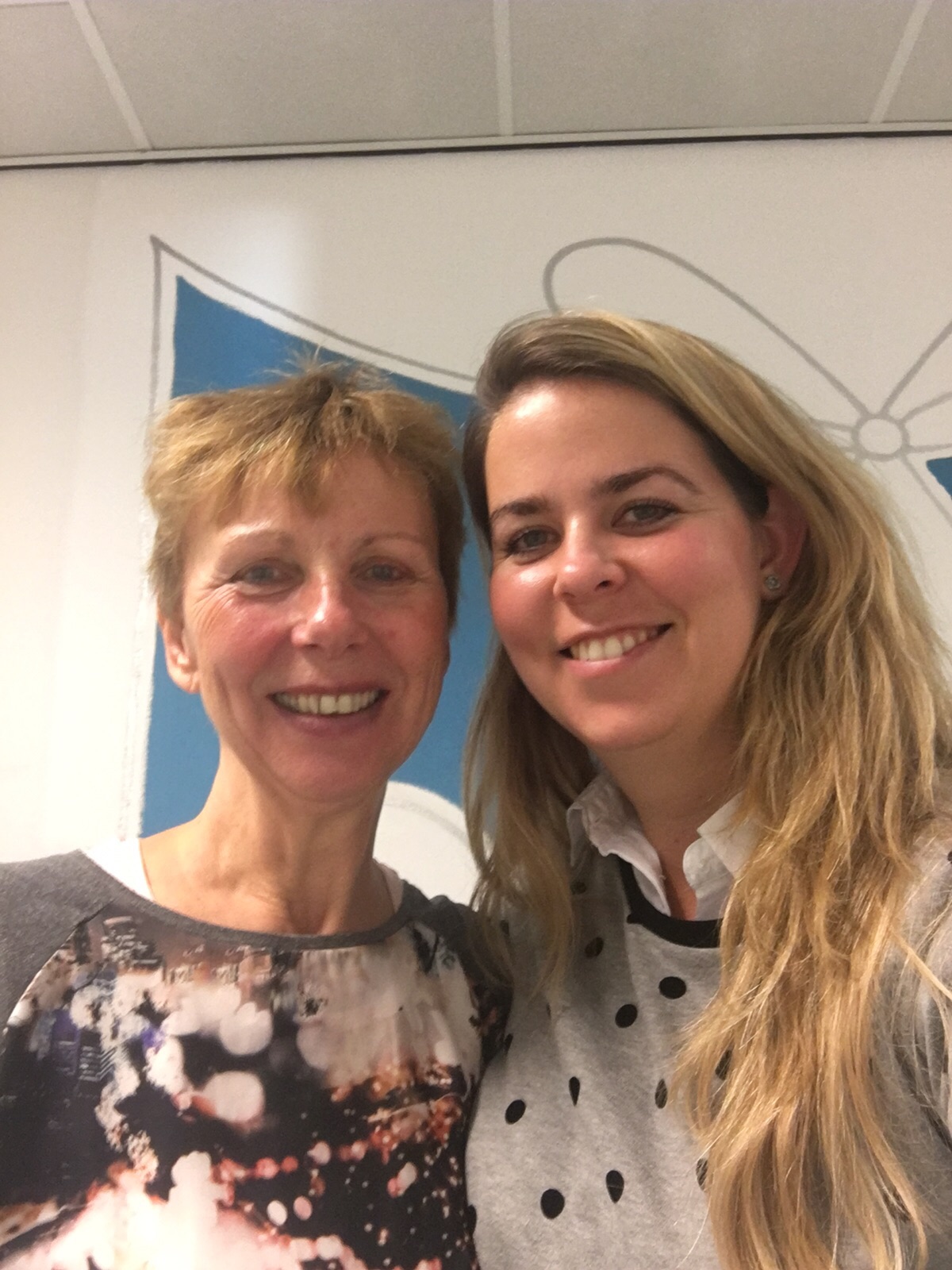 Ja, mooi hè? Sanne was student bij ons en ik haar begeleidster. We hebben samen veel bevallingen gedaan. Ze is heel empathisch. In 2009 hebben we de eindevaluatie in de hot tub gedaan.