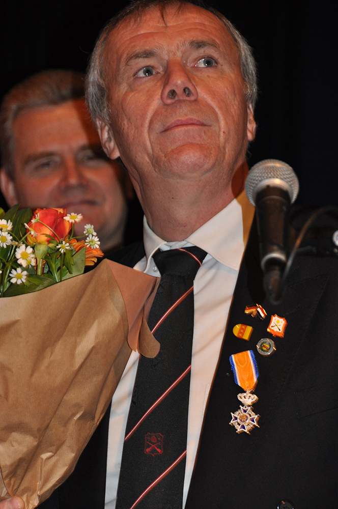 Een derde opvallende gedecoreerde was Herman ter Weele (foto rechts), de man van onder andere de Bornse Schutters Vereniging. Hij wist een hele delegatie vanuit de schutters in Rheine in de zaal aanwezig en het was om die reden dat Welten ook in het Duits de nodige verdiensten van Ter Weele opsomde. “Hut ab”, klonk het tot slot.