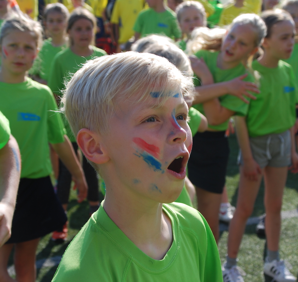 ‘We swingen ons Fitlala, we zingen ons fit ja ja, we springen lekker in het rond, yes daarom – parompompom’, klonk het uit de opgetogen kelen. Bij de meesten tenminste, want een groot aantal kinderen van de hogere groepen vonden het maar ‘stom’ en hadden meer oog voor elkaar en voor de strijd die ze even later met elkaar op de diverse sportvelden zouden aangaan. Voor de groepen 1 tot en met 6 vertaalde dit zich in diverse spelletjes waarbij plezier en samenwerken centraal staat, terwijl de groepen 7 en 8 er een heuse atletieksportdag van maken.