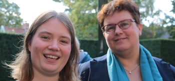 Anja Tanke: “Afgelopen week moest ik denken aan een citaat van Rudyard Kipling, `Als de geschiedenis werd onderwezen in de vorm van verhalen dan zou het nooit worden vergeten`. In het Bussemakerhuis wordt historie verteld. Anne doet dit ook in een mooi verhaal in het blad van de Heemkundevereniging, Boorn en Boerschop. Mooi dat jij iets kostbaars uit de geschiedenis van Borne in het lege laatje van Borne, in het Rijksmuseum van Oudheden in Leiden weet te krijgen. Ik vind het dan ook een grote eer dat ik deze tentoonstelling mag openen.” (foto rechts met Anne Ponten links)
