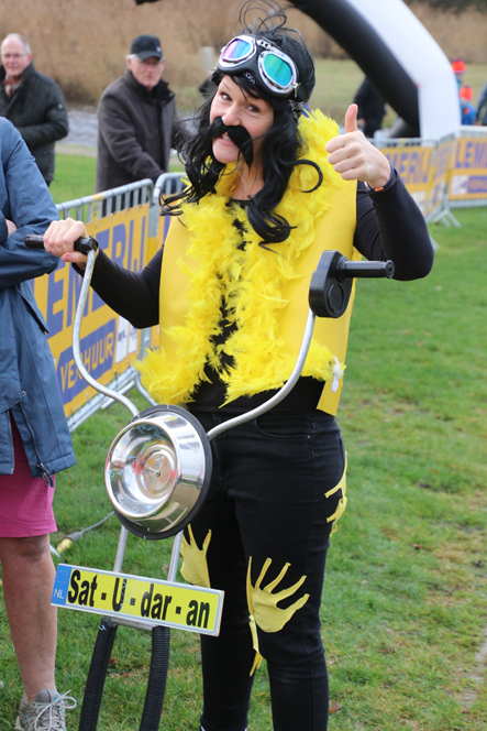 “Dit wat de eerste keer dat ik meedeed”, klink het euforisch na afloop. “Het idee voor deze outfit kwam van een collega. Ik heb heel lang getwijfeld of ik zou meedoen, maar uiteindelijk maar ja gezegd. Maar ik beloof nu al dat ik er volgend jaar weer sta hoor”, aldus Marlies. Als beloning mag ze een jaar lang gratis gebruik maken van de fitness faciliteiten van Fit-For-Free, de mede-organisator van het evenement. En voor iedereen was er na afloop warme chocolademelk, snert en natuurlijk oliebollen. (RH/AJ/BM)