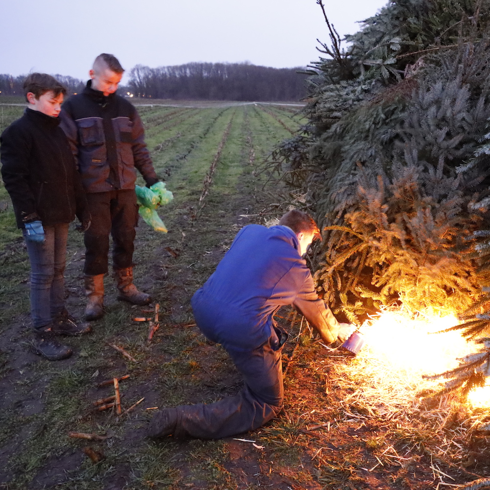 Het is alweer voor de 33ste keer dat deze kerstboomverbranding wordt gehouden, waarvan de laatste tien jaar onder leiding van Mike van Dorp. De gehele groep bestaat uit ongeveer 16 vrijwilligers. Ook dit jaar is Jeroen van de Aa degene die de rol van aansteker op zich neemt. En hoewel het er zo eenvoudig uitziet: bomen verzamelen en aansteken maar..., gaat er toch een hoop werk aan vooraf.