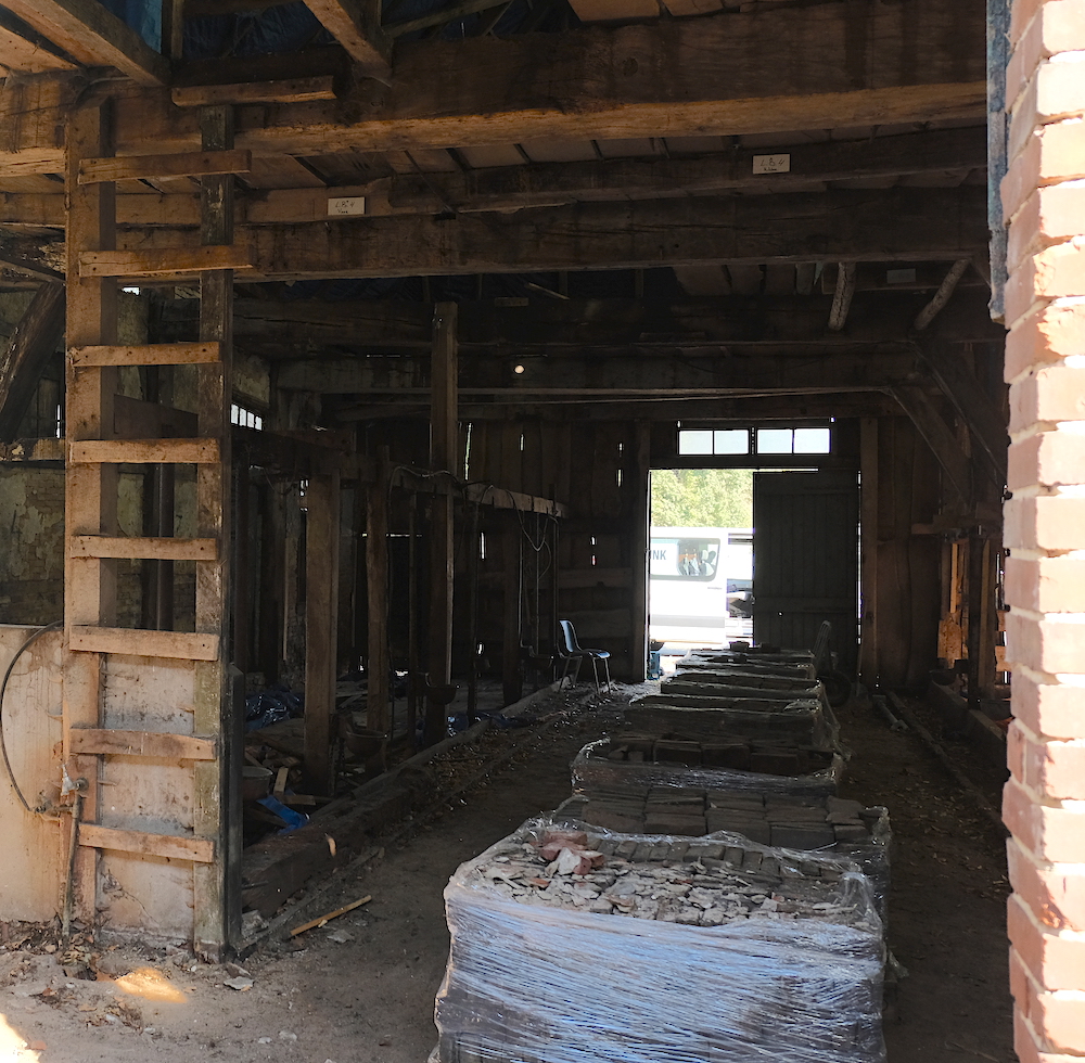 Het gevolg van dit alles is dat het eenbeukig vakwerkhuis met schilddak, opkamer, halve kruisvensters met luiken en oud glas steen voor steen wordt afgebroken en op een nieuwe plek, dichtblij de kleedkamers van het Openluchttheater, weer steen voor steen wordt opgebouwd. Op beide locaties is aannemer Wesselink uit Weerselo inmiddels volop bezig. In en rond de oude plek aan de Lodiek Landen liggen al pallets vol met stenen klaar om getransporteerd te worden. Zo wordt het monument systematisch en uiterst zorgvuldig stap voor stap ontmanteld. Op de nieuwe plek ligt de verse fundering al te wachten om de nieuwe trots te kunnen dragen.